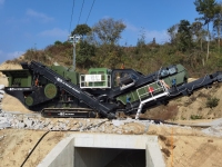 履带式7018三层筛分机,0-5㎜5--10㎜10-20㎜10--31.5㎜常规四个料,时处理量260吨左右